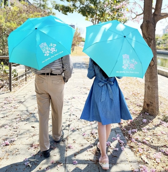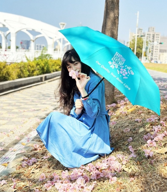 4.花現幸福:傘面以柔和色調輔以簡約線條,勾勒中鋼集團總部大樓,及高雄市前鎮河畔由中鋼所認養,花語意涵感恩與幸福的風鈴花,傳遞中鋼不忘初心「Our Quality, Your Better Life」的經營理念。