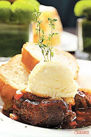 托斯卡那燉紅酒小牛頰肉320元 牛頰肉充滿膠質,與紅酒醬汁頗契合。店家裝飾超美麗!!!