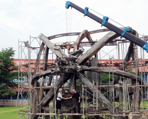 一年一度的宜蘭國際童玩節即將在7月5日登場,主辦單位首先亮相由台東八八風災漂流木製成的藝術品「種子船」,高9米、寬9米、重達27噸的種子船,在4日完成由藝術家林舜龍及文化局長林秋芳敲響銅鑼,象徵種子船正式啟航。