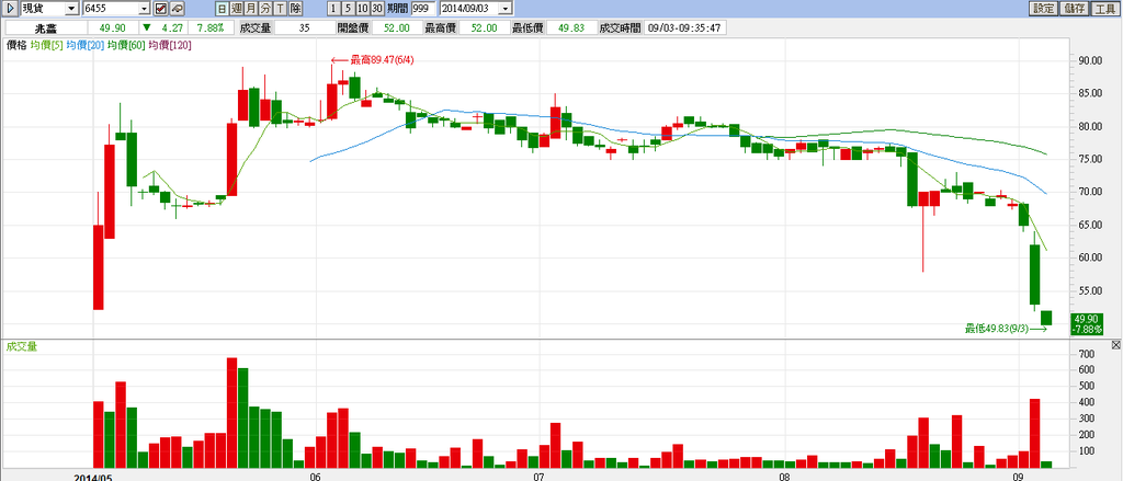 週一晶電宣布第3季轉淡,兆鑫週二單日大跌近2成,當日成交參考價為53元,距6月初高點跌掉38%。