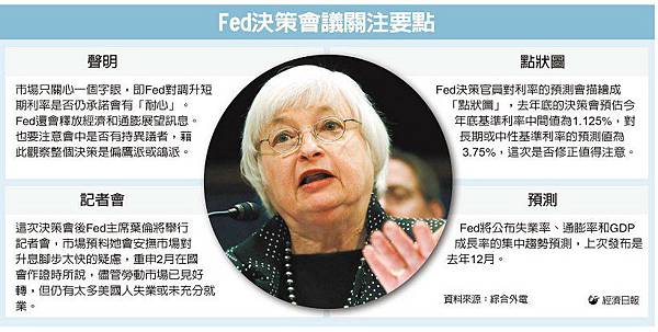 葉倫盼投資人停止依賴前瞻指引 一旦周四FOMC會議聲明不夠具體 意味開始啟動政策正常化 美國聯準會(Fed)18日(台北時間19日凌晨)將結束為期兩天的決策會議,如果屆時聲明讓市場較難預測Fed動向,就代表Fed即將開始讓政策正常化。 彭博資訊訪調的經濟學家中,近90%預期聯邦公開市場操作委員會(FOMC)本周的聲明將拿掉「耐心」等待升息時機的字眼。如果FOMC真的刪除耐心一詞,市場波動可能加劇。 臨FOMC開會之際,美股17日早盤下跌,上個交易日締造逾一個月來最大漲勢只維持一日。道瓊工業股價指數跌182.01點,跌幅1%;標普500指數和那斯達克各跌0.7%和0.2%。