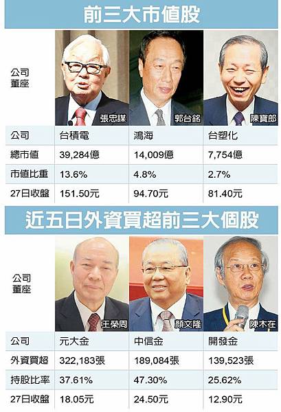 至於近期漲勢凌厲的金融股,外資也持有玉山金(2884)近58%,富邦金(2881)、國泰金(2882)持股各34.2%及26.7%,在金融股大漲下,外資持股市值將同步攀升,成為最大贏家。