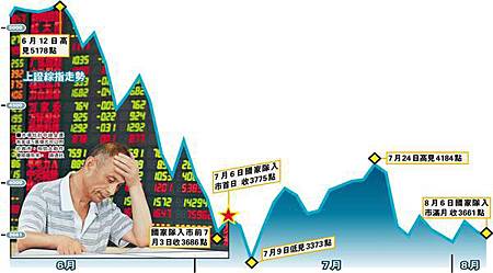 中央出手救A股至昨(6)日已滿1個月,「國家隊」由7月6日正式入市,據高盛估計,中央已斥9000億元(人民幣,下同)來救市,外電引述知情人士稱,中證金還有多達5兆元可以用於救市,相信大動作會陸續有來。