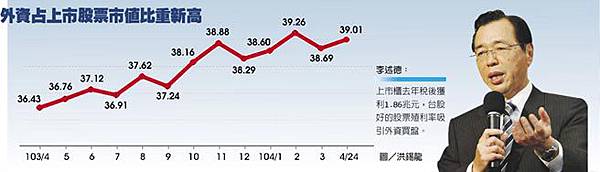 【外資持股占比逼近39%】 根據台灣證券交易所統計,外資總持台股集中市場股票,市值為9.7兆元,占全體上市股票市值的38.7%,隨著台股氣氛好轉,全球資金寬鬆,外資持股有機會挑戰今年2月39.3%的新高。 根據證交所統計,外資在上周的19日到23日,在集中市場總買進金額為1,237億元,總賣出金額為963億元,累計買超為273億元,另統計今年以來,外資總買進金額為5兆3,450億元,總賣出金額為5兆2,319億元,累計買超為1,131億元。