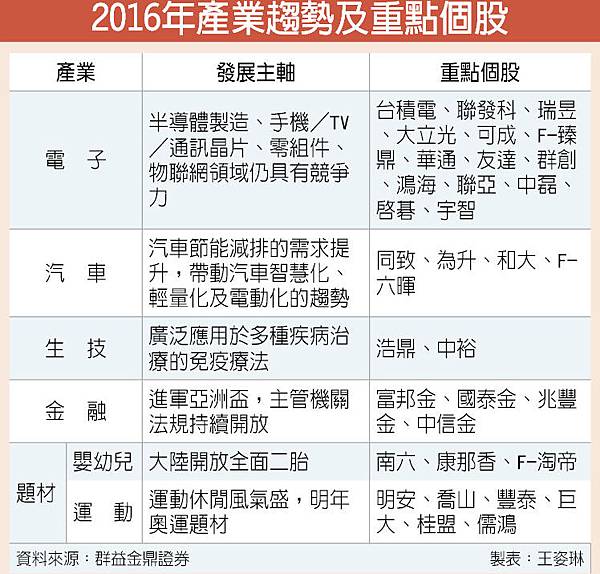 工商時報 記者王姿琳/台北報導 2016年產業趨勢及重點個股
