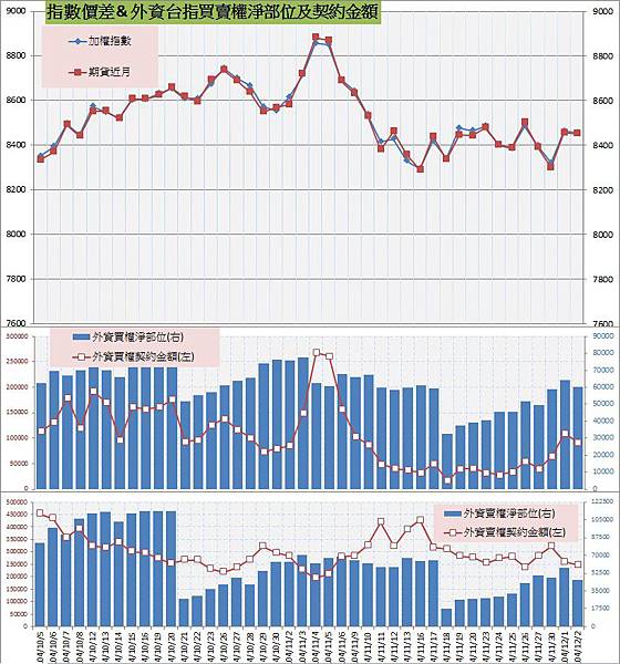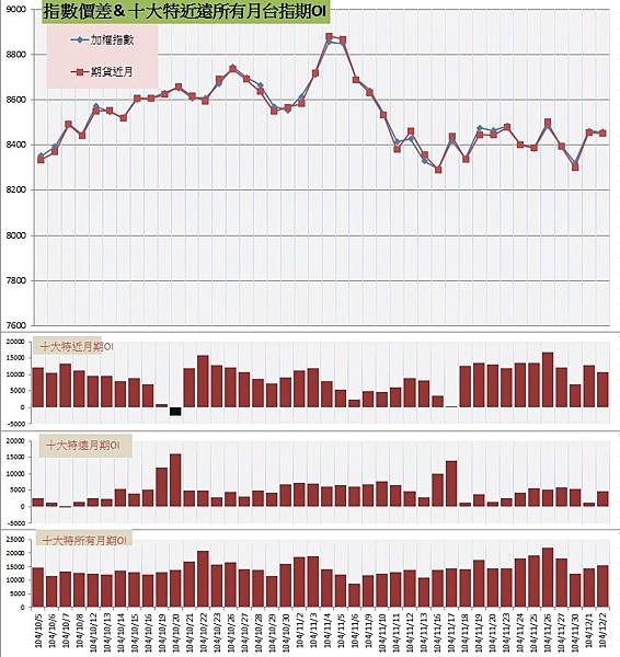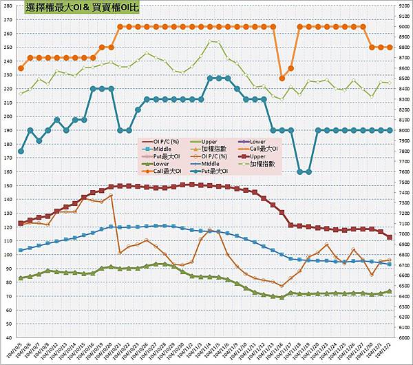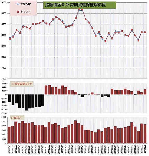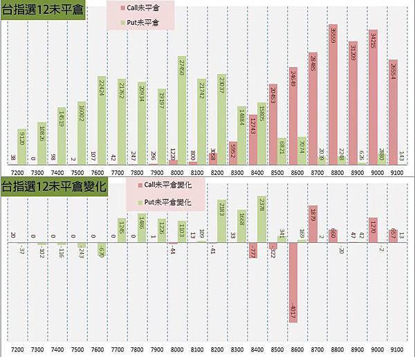 2. 期貨選擇權:12月買權未平倉量最大量在履約價8800點的3.5萬口,賣權未平倉量最大量在履約價8000點的2.7萬口。