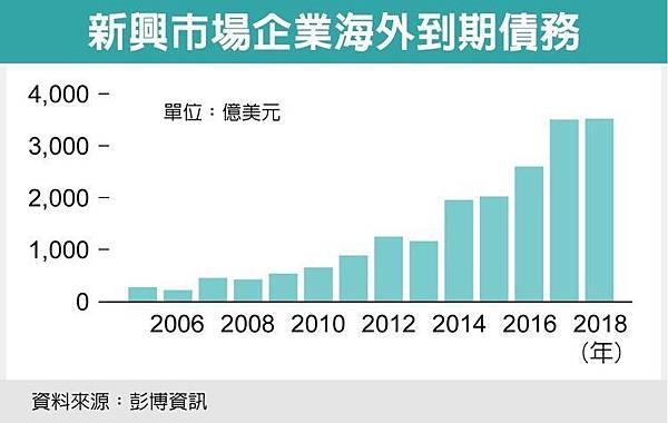 新興市場企業海外到期債務 資料來源:彭博資訊