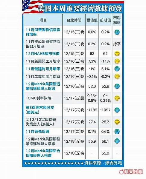 Q.Fed明年將如何舉措? A.經濟學者現在更關心Fed2016年升息的速度及幅度。利率期貨顯示,投資人目前僅預期2016年將升息三次,每次0.25個百分點。Fed本身預測的利率上升幅度較大,而大部分經濟學者都預測Fed將會降低利率預測。