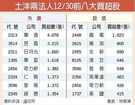 【土洋法人拚作帳封關喊衝】 台股連三日量能無起色,今(31)日將封關,儘管今年以來集中及櫃買兩市場各累計跌逾11%與8%,不過加權指數今日力拚月線收紅,而櫃買指數也挑戰站回月線關卡,外資、投信這兩大法人昨(30)日大量買超股,今日封關表現可期。 下周明年開市後外資歸隊,量能才會明顯回溫。觀察目前全球股市以美股四大指數最強勢;台股由於量能不振,要注意下周外資買盤回流力道,將攸關台股擺脫盤勢轉強。