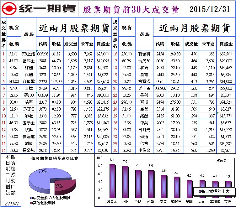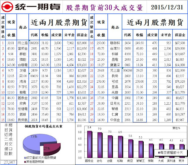12/31(四)股票期貨前十大成交量