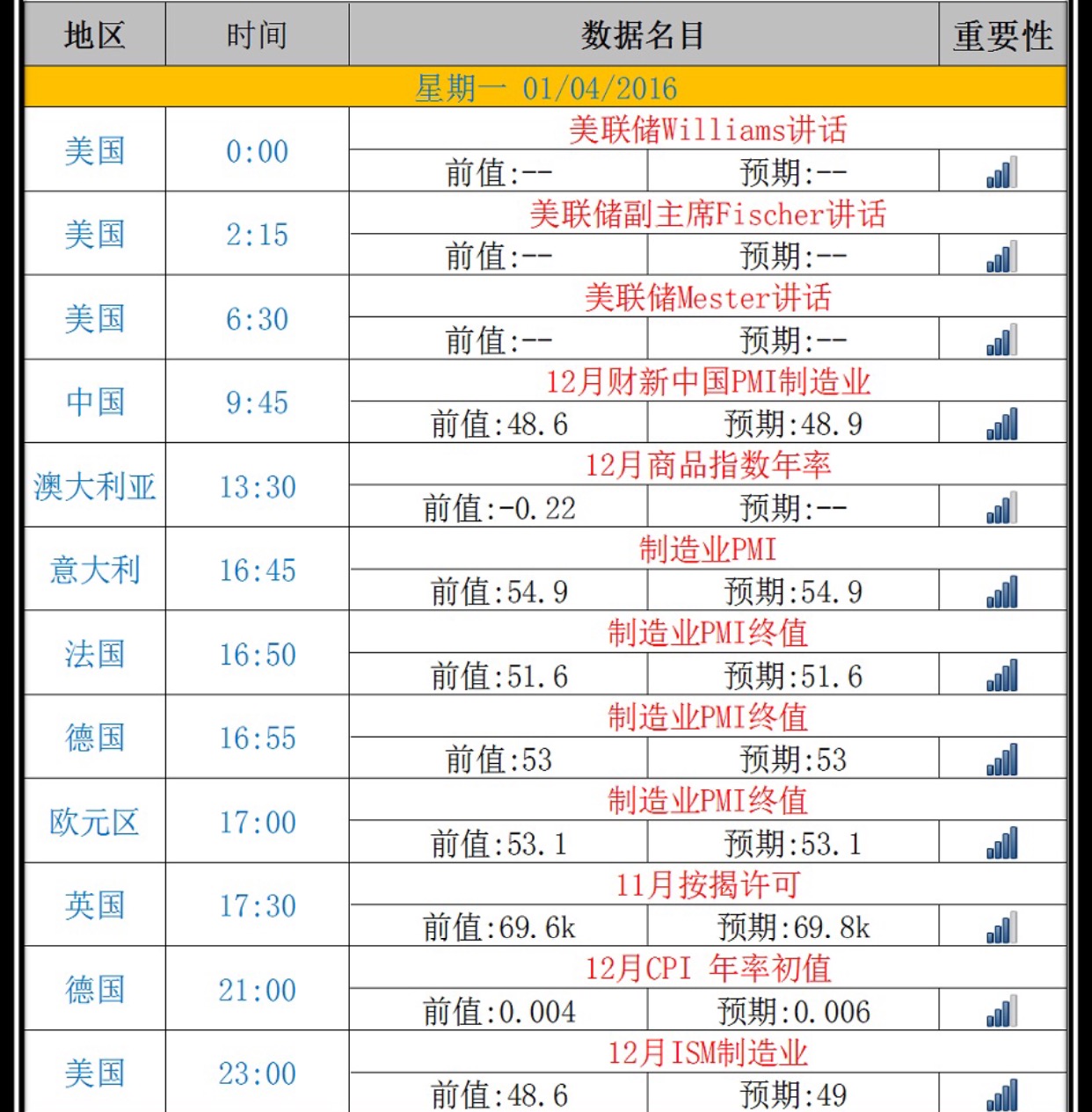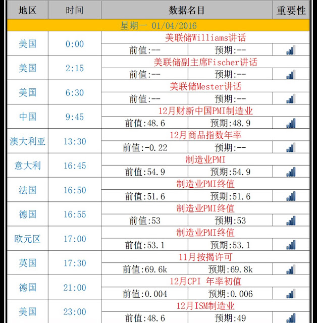 今日01/04(一)重要財經數據