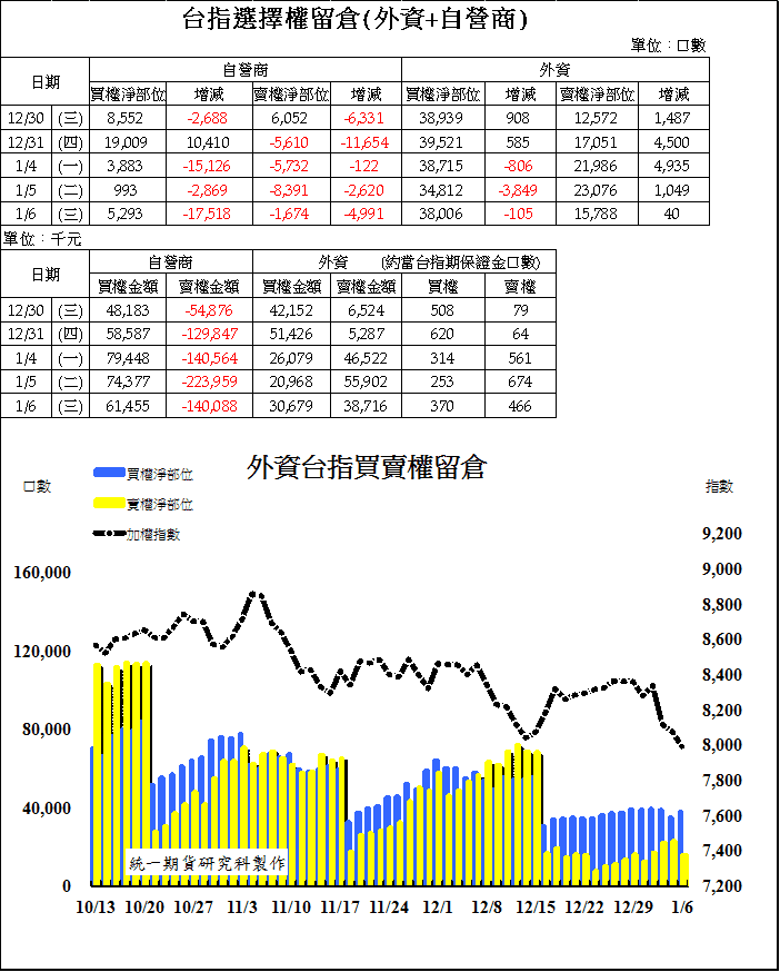 01/06(三)三大法人未平倉部位