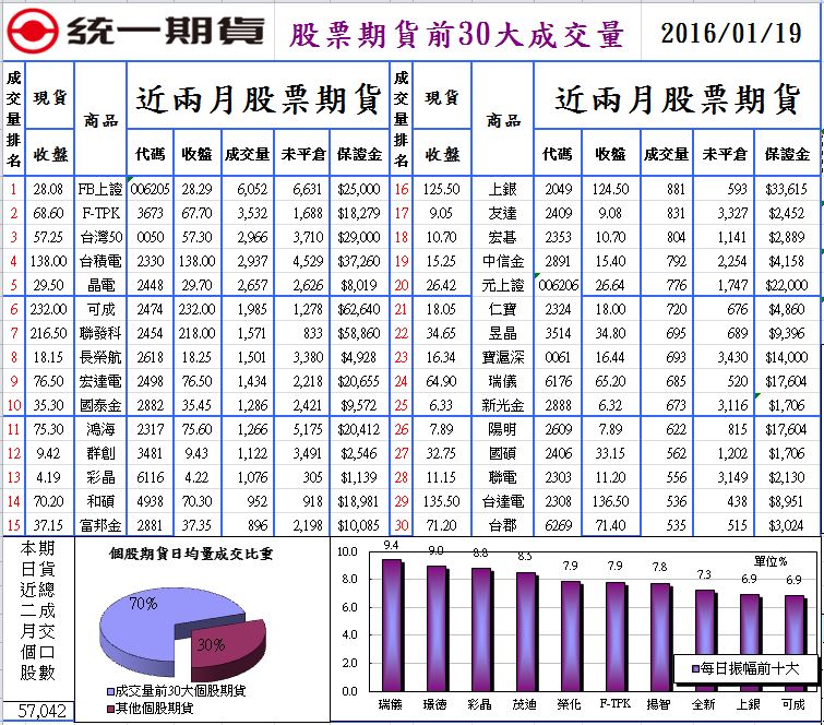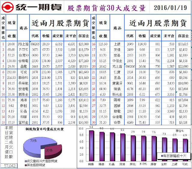 01/19(二)股票期貨前十大成交量
