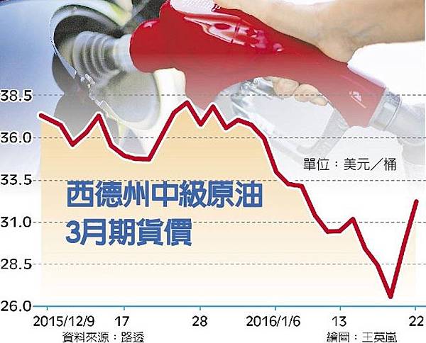 受到歐、日央行可能擴大振興方案,以及美國遭遇強烈暴風雪,激勵上周五油價飆漲9%,升破每桶32美元,寫下逾4個月來最大單日漲幅。另反映取暖用油交易的柴油期價上周五也勁揚,單日漲幅亦創逾10年來之最。