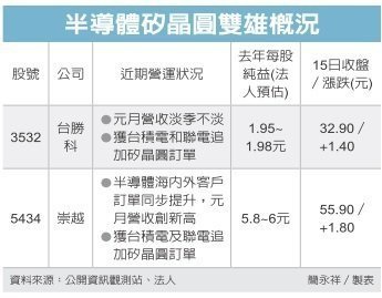 台勝科是國內最大半導體12吋晶圓製造商,年產能約28萬片,擁有在地製造優勢,是此次強震晶圓雙雄追加採購矽晶圓最大受惠者;崇越則為日本矽晶圓大廠信越在台代理商。 台勝科在麥寮的12吋矽晶圓年產線為28萬片,公司原為因應今年3月半導體矽晶圓廠訂單回溫,大舉增備庫存,甚至向母公司勝高調度晶棒,以利在台快速切割。