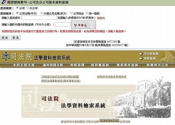 ▲確保設計公司有合法登記及無重大糾紛紀錄,是屋主自保的第一步。上圖為經濟部商業司─公司及分公司基本資料查詢網頁;下圖為司法院法學資料檢索系統網頁。
