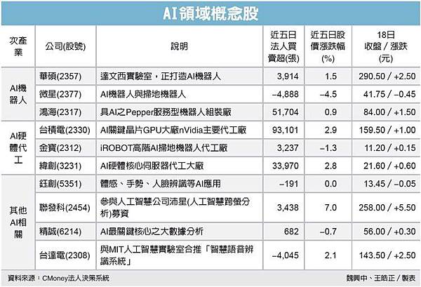 圖/經濟日報提供AI概念股/台積華碩 法人卡位