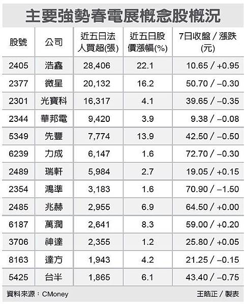 經濟日報 記者王皓正/台北報導 「春季電腦展」即將登場,相關概念股將躍居盤面焦點,不但電子傳統淡季帶來銷售佳績外,也將嗅出電子股未來主流族群所在。 報系資料照