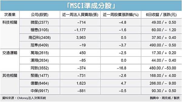 期貨小靜來報新聞囉! 【MSCI新兵概念躍盤面亮點】 近期台股市場的焦點,逐漸轉移到5月中旬即將公布MSCI季度調整。儘管面臨中國市場權重將獲調升趨勢的侵擾,台股連11降恐難避免,除了權重調整的重頭大戲外,投資人關注的另一焦點,就是準成分概念族群。 MSCI成分股的挑選原則,以市值、前景、流動性、產業地位等作為綜合評量依據。 MSCI權重季度調整一年有四次,分別在每年的2月、5月、8月及11月,其中,5月與11月為半年度調整,重要性與調整幅度向來均較大,因此,其影響力相對大於2月、8月的季度調整,成為市場矚目的焦點。