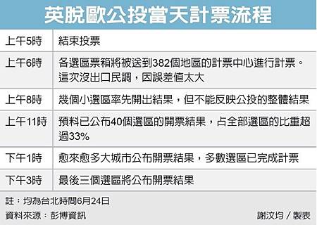 經濟日報 編譯林奕榮/綜合外電 分享英國23日脫歐公投進入倒數最後一天,市場正嚴陣以待,倫敦金融城交易員更已準備23日徹夜不眠、等待計票結果,以迎接全球金融市場劇烈動盪。分析師認為,若英國脫歐,將使歐英股市重挫,日圓、瑞士法郎看漲,留歐則有助歐股大漲、英鎊與歐元走強,建議投資人做好準備。 英國脫歐的可能性已增添倫敦金融城的緊張氛圍,不少在倫敦金融城工作的交易員都已準備徹夜緊盯開票結果,以隨時因應國際股匯債市的波動。 儘管民調顯示,目前脫歐與留歐陣營的支持率勢均力敵,投資人仍押注留歐派將獲勝,帶動英鎊匯價22日盤中升值0.8%至1.4775美元,美股三大指數漲0.4%至0.5%,歐股持續勁揚。