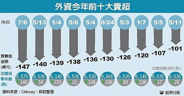 期貨小靜來報新聞囉! 【外資大賣台股防颱】 外資昨天股、期、匯市「三殺」,在英國脫歐等五大變數橫陳下,台股現貨大賣147億元,改寫今年來單日賣超紀錄;期貨淨多單也劇減5,890口。 強颱尼伯特來襲,台股明天可能休市一天,正值市場避險與恐慌情緒升溫之際,這個颱風假放得令人提心吊膽,在今天不排除是本周最後一個交易日之下,內外資法人與散戶的避險賣盤恐擴大。 英國脫歐影響浮現,國際股市再現恐慌,英不動產基金暫停贖回、義大利銀行爆壞帳危機、英鎊破底、油價挫跌、i7拉貨弱等五大變數衝擊下,台股從資金行情轉向利空罩頂。