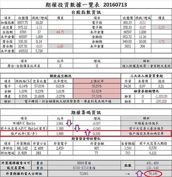 【外資撐腰選擇權買權?】 選擇權買權上移,最大量序列由8,800點上移100點到8,900點。 選擇權買權最大量區間也開始往上移,目前最大量序列為8,900點,共計有3.4萬口,同時9,000點也有3.2萬口的未平倉,籌碼看來比先前更加積極。 選擇權賣權部分,7月全月賣權最大量區間集中在8,400點到8,200點低檔位置,緩慢向上墊高。現階段最大量未平倉序列位在8,400點,有3.6萬口的籌碼。