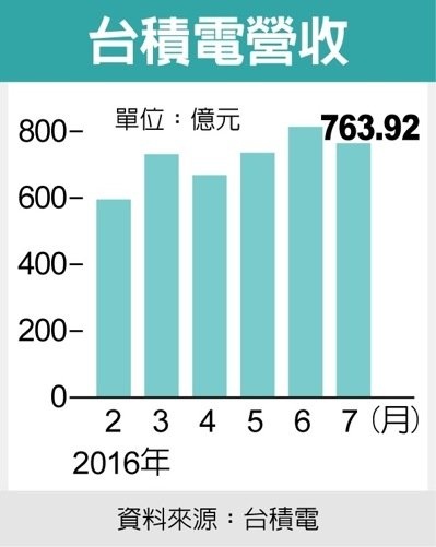 晶圓代工龍頭台積電昨(10)日公布7月合併營收意外較6月下滑6.1%,並跌破800億元大關、為763.92億元,引起市場關注。台積電晚間強調,本季營運不因7月營收下滑而有太大波動,維持先前於法說會釋出的本季營收展望不變。