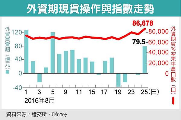 群益期貨協理林昌興指出,摩台期在下周二(30)結算,到下次台指期結算9月21日有一段空窗期,外資容易在此期間操作,從美元指數近期盤整走勢來看,美國聯準會升息機率降低,外資發動奇襲買超台積電、聯電、國泰金等,拉升指數收復月線9,085點,使得市場氛圍再度偏多,有機會走出一波軋空行情。