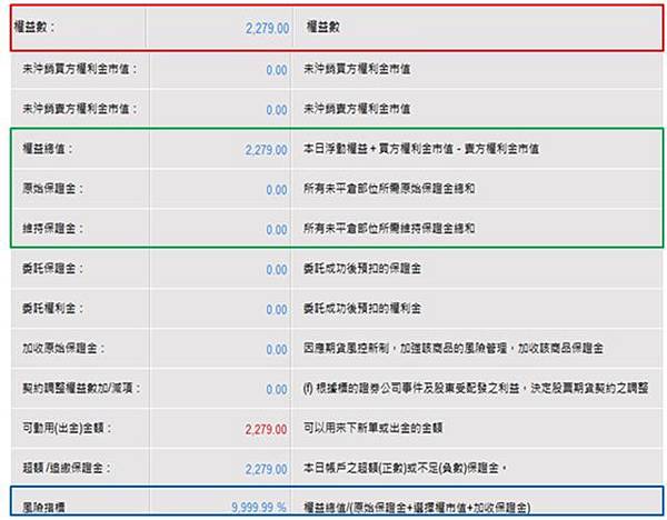 1. 權益總值 = 你期貨帳戶裡所有的錢