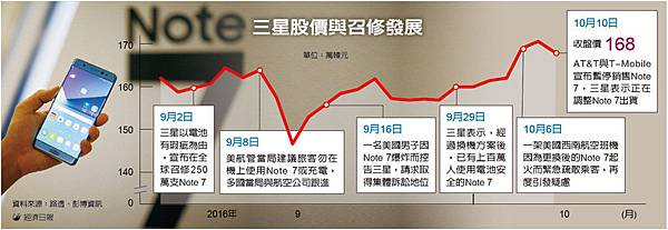 【三星傳停產Note 7 波及供應鏈】 三星Galaxy Note 7智慧手機召回換新後仍繼續傳出過熱起火事件,三星已暫停生產Note 7,美國AT&T、T-Mobile已暫停更換或銷售Note 7,使原已陷入召回危機的三星再受衝擊。 三星傳出將二度停產Note 7,台灣相關供應鏈恐遭受到池魚之殃,包含大立光、超眾、雙鴻,晶技等。超眾、雙鴻均表示不對單一客戶傳言評論。