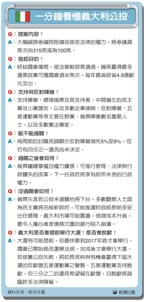 表/脫歐潮? 一分鐘看懂義大利修憲公投