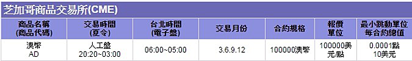 芝加哥商品交易所 (CME) 外匯期貨合約規格說明 :