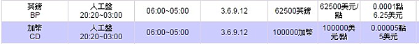 最小跳動單位 / 每合約總值 : 0.0001 點 / 6.25美元
