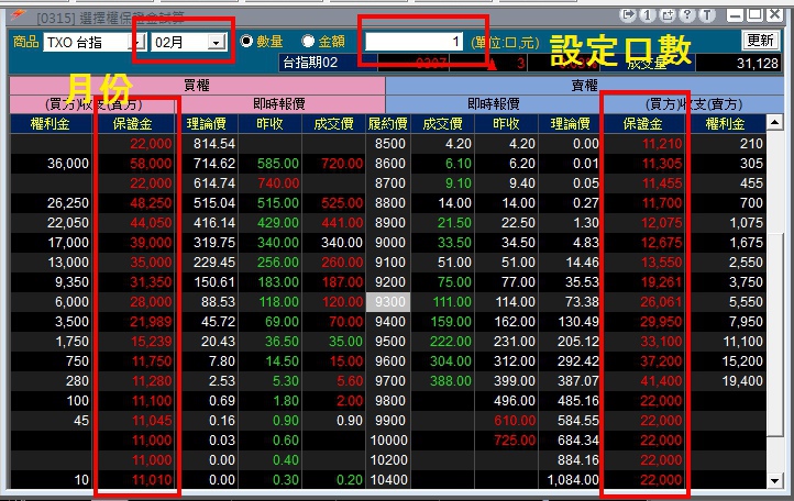直接設定月份/口數/所有履約價保證金,就一目了然囉~
