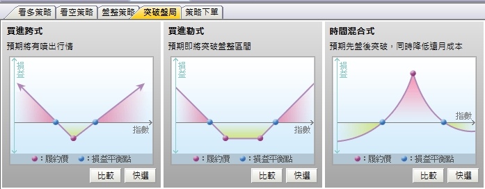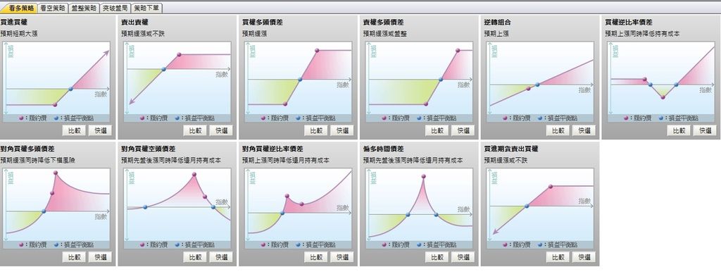 如果搞不太清楚到底是要什麼選擇權策略呢?也可以透過軟體的選擇權策略組合