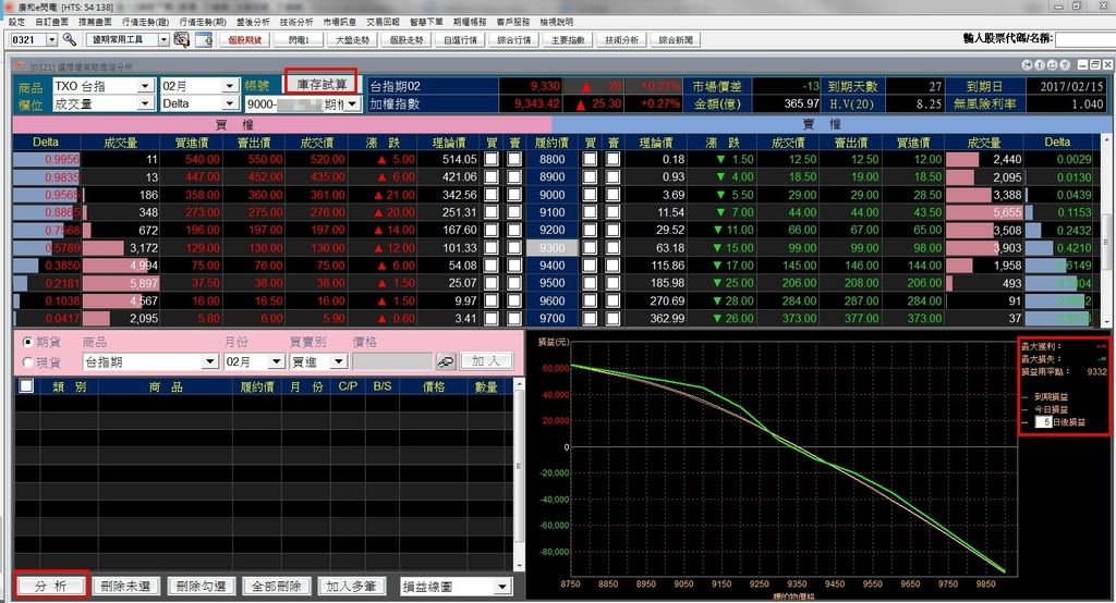 如果選擇權庫存部位很多 可以分析 最大獲利 最大損失 損益兩平點價格是多少 蠻方便的喔!