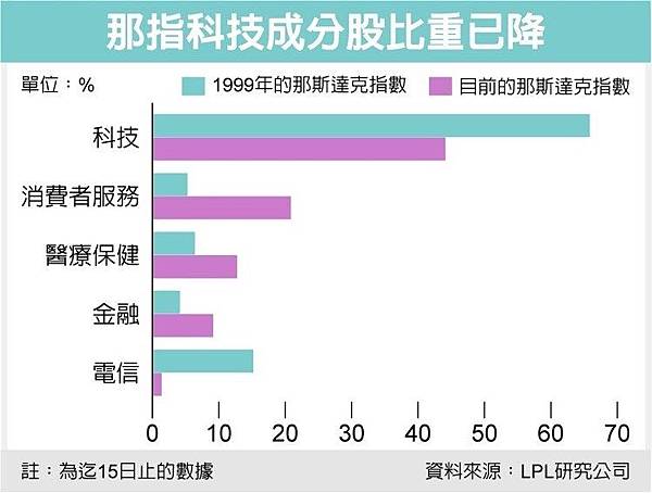 那指科技成分股比重已降 資料來源:LPL研究公司