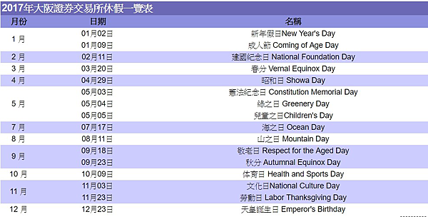 ▲ 2017年新加坡國際金融交易所休假一覽表