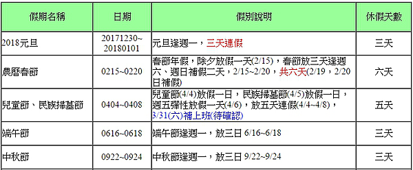 ▲▲ 西元2018年 - 民國107 年 假期行事曆 ▲▲