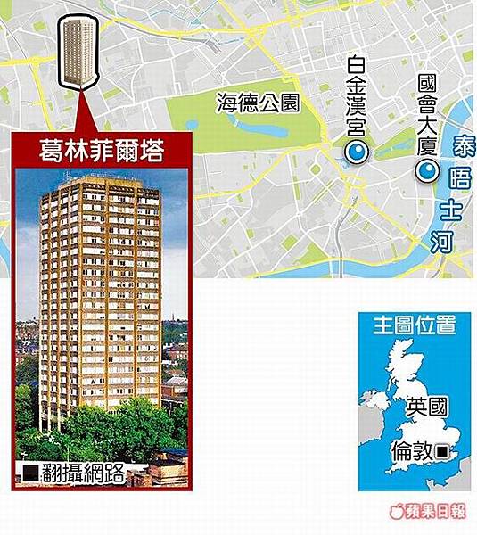英國倫敦27層樓公寓「葛林菲爾塔」昨凌晨發生惡夜大火,官方確定12死74傷。