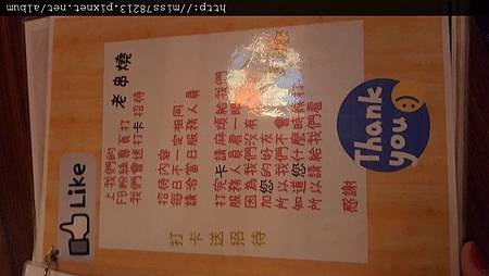 ▲老串燒菜單 :