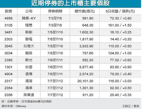 期貨小靜分享期貨新聞! 【本周停券密集台股量縮】 本周接續「停資券」,衝擊成交量能降溫,滑落至「8」字頭。近期進入除權息前的停券高峰期,量能降溫成為常態。 美股超級財報與台股半年報,近期陸續揭曉,加上上市櫃法說會密集登場,大盤短線干擾因素頗多。 市場聚焦美國聯準會(Fed)政策聲明,導致追價買盤縮手,配合停券邁入高峰,台股成交動能受到影響。 「停券」,是指原本可以融券的股票,暫時不能再以融券賣出。