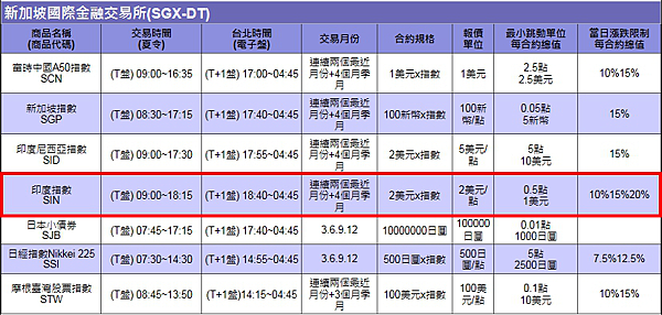 ▄ 印度期貨指數 新加坡國際金融交易所(SGX-DT) 合約規格 ▄