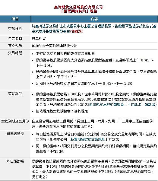 ◆◆ 臺灣期貨交易所股份有限公司「股票期貨契約」規格 ◆◆