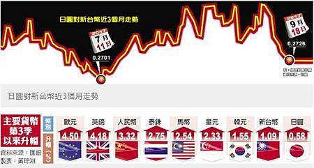 【日圓貶!日車降日團漲赴日買房增】 日圓大跳水,對新台幣迸出2個月新低點來到0.2726,「日圓症候群」萬箭齊發!日系進口新車降價1成,鳴了日貨降價第一槍。 想到日本玩?日本線訂位率飆破9成,年底前賞楓團費喊漲至少3,000元。 想到日本置產?日本物件詢問度暴增1倍,又以退休族群最熱衷。