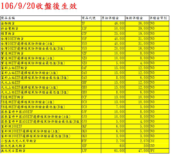 自 106/ 9 / 20 收盤後生效 (保證金調整公告)