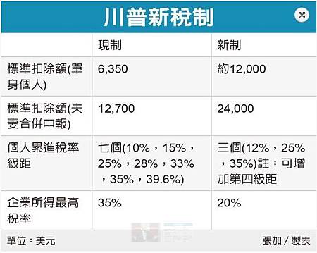 【川普稅改出爐激勵美元指數大漲】 川普政府27日公布醞釀多時的稅改計畫,將企業最高稅率由目前的35%降至20%,個人所得稅最高邊際稅率從39.6%降至35%,以鼓勵企業海外盈餘回流,並使美國企業能更公平與外國企業競爭。 針對目前企業界停留在海外的獲利,新稅制將對這些獲利採取一次性課稅,為海外資金匯回美國鋪路,而未來美國企業的海外事業獲利,美國政府也會以較低的稅率來課徵。 資料來源:udn 鉅亨網