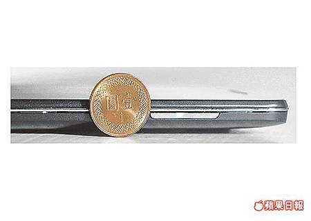 機身厚度比1個硬幣半徑高,為9公厘,重147克,實際拿在手上頗為厚實。
